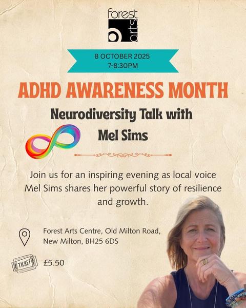 Forest Arts Centre Wednesday 8th October 7:00pm Neurodiversity Talk £5.50 Neurodiversity Talk with Mel Sims | Forest Arts Centre